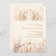 Um convite para Chás de fraldas elegante. Um fundo creme, cor bege, decorado com flores silvestres de cor aquosa, cor-de-rosa.
