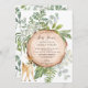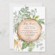 Linda cor-de-água verde armando uma fatia de madeira com um doce convite para chás de fraldas de veados. Sacudir nosso doce design para ver uma folha verde coordenadora de volta para um toque especial extra.