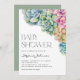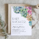 Convide convidados para o seu evento com este convite personalizável para chás de fraldas florais. Apresenta suculentes de cor aquosa azul, verde, rosa e ouro. Personalize adicionando seus detalhes. Este suculento convite de chá de fraldas é perfeito para eventos de verão.