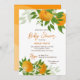 Citrus oranges de verão modelo de convite para chá de fraldas de . Pisca laranja com laranja, laranja e folhas verdes.