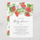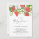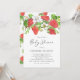 Convide convidados para o seu evento com este convite de chá de fraldas personalizável. Apresenta terra de cor-de-água de morangos e flores de morango. Personalize este convite de chá de fraldas de morango adicionando seus próprios detalhes de evento. Este convite para chás de fraldas de aquarela é perfeito para chás de fraldas de verão.