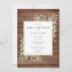 Apresentando delicadas folhas de cor d'água verde em um fundo de madeira rústico, este chá de fraldas neutro em na moda ou convite para borrifar pode ser personalizado com suas informações especiais do dia. Projetado por Thisnotme©