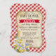 Cheque de gingham vermelho com a disies country do chá de fraldas de convite de piquenique design.