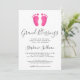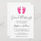 Este Convite à Chá de fraldas da vovó moderno é decorado com tipografia de na moda e pés de bebê cor-de-água rosa e fofo. Facilmente personalizável. Original Watercolor © Michele Davies.
