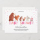 Europeia: Um convite para chás de fraldas fofo e divertido! Tudo desenhado à mão! Bons animais com confete. Cores cor-de-rosa para um chá de fraldas feminino.