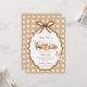 Um design acolchoado de chá de fraldas de floresta envolto no calor do outono. Apresentando animais de floresta desenhados à mão, um toco de árvore rústica, folhas caídas e borboletas moles, este layout é enquadrado em uma borda de fita redimensionada com um fundo bege quente de gingham. Ideal para chás de outono ou temas florestais neutros que celebram uma mama-a-ser com amor e charme da natureza.