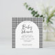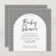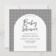 Crie seu próprio convite personalizado para chás de fraldas com design mínimo simples e design de padrão de xadrez preto e branco.