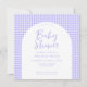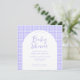 Crie seu próprio convite personalizado de chá de fraldas com design simples e mínimo design e padrão de xadrez roxo.