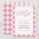 Convites Chá de fraldas de Xadrez Rosa Gingham Simples