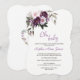Design único com cor de água púrpura, ameixa, flores cor-de-rosa, buquês de folhas verdes, caligrafia moderna, coroa floral em forma cardíaca. Use a ferramenta Personalizar para adicionar suas informações. Itens correspondentes podem ser encontrados na minha Coleção de Bloom Floral Púrpura Rosa.
