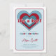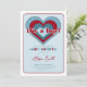 Namorados adorável convite para chás de fraldas com corações vermelho e azul.