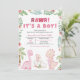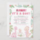 Prepare-se para rugir e celebrar com este Convite para Chá de fraldas Dinossauro para uma menina. Apresentando dinossauros cor-de-rosa fofinhos, incluindo um dino de bebê para incubação, rodeado de verde-luxuosa, folhas tropicais e sotaques florais de vassoura, este design é perfeito para um chá de fraldas divertido e na moda. BBS732