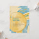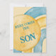 Modern Watercolor Yellow e Blue Rainbow Boho Retro Sunshine Convite para Chá de fraldas Temático com Título " Aqui vem o Filho"