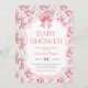 Convite para Chás de fraldas cor-de-rosa. Um padrão rosa bonito, suave e feminino com design arco rosa coquetel. Adorável convite de chá de fraldas para a futura mãe. A Vintage e a menina vibe perfeitamente para um chá de fraldas feminino.
