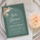 Surpreenda seus hóspedes com estes adoráveis convites para chás de fraldas, apresentando a tipografia retrô e o design de arco verde! Adicione facilmente seus próprios detalhes clicando na opção "personalizar este modelo".
