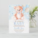 Prepare-se para celebrar com o nosso doce Convite para Chá de fraldas do Balão do Urso Marrom. Com um urso de fofinho aquoso segurando balões azuis macios, rodeados por nuvens fofinhas e estrelas cintilantes, este design é perfeito para um chá temático "Nós podemos esperar muito". Os tons azuis macios o tornam ideal para acolher um bebê precioso no estilo acolhedor e animador. Torne seu chá de fraldas especial com este convite encantador e temático que seus hóspedes amarão! BBS1044
