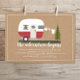 Aventura, chá de fraldas neutro temático com ilustração do trailer de camper retrô vermelho e branco com roupas de bebê penduradas na linha de roupas ligadas a cada árvore verde. O plano de fundo é o estoque de cartão marrom inspirado.