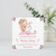 O convite do chá de fraldas da menina caracteriza a bailarina que guardara um coelho do bebê.