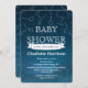 Convites temáticos do chá de fraldas das constelações bonitos da estrela do espaço! Caracterizam um fundo do espaço do céu nocturno dispersado com estrelas minúsculas, constelações brancas, uma bandeira decorativa branca da fita, e texto branco. Você estará disparando para as estrelas como você dá boas-vindas ao seu pequeno especial!