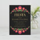 Um belo convite ao estilo floral fiesta para celebrar o bebê a caminho. Apresenta um design de flores de fiesta vermelha e uma inscrição dourada num fundo preto espantoso. Perfeito para um chá de fraldas temático mexicano. Fácil de personalizar selecionando o botão "Personalizar" para adicionar sua própria redação.