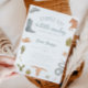 Cartão de convite para chá de fraldas de menino bonito com ilustrações de botas de cowboy, cavalo, cobra, crânio, cacto, chapéus de cowboy, etc. O texto diz "sela! um cowboy está a caminho"