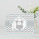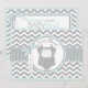 O impressão chique da viga das cinzas e do branco com azuis bebés contrasta e uma ligação em ponte bonito das bolinhas com um laço e um arco 3D-look e fita para um cartão do convite do chá de fraldas do menino.
