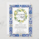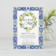 Este chá de fraldas chic Lemon Azure por correio é perfeito para aqueles que vivem uma longa distância dos entes queridos, mas que ainda querem torná-lo especial para a mãe ou os pais ser, ao chuvei-los com amor e presentes. Personalize-a com sua mensagem e detalhes de forma fácil e rápida, basta pressionar o botão personalizar para reorganizar e formatar o estilo e a posição do texto. Apresentando uma coroa de limão de aquarela e um belo design de mosaico mediterrânico do azure. Itens correspondentes disponíveis no repositório! (c) O feliz Cat Studio.