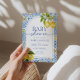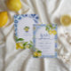 Inspirado pelo encanto da Costa Amalfi, este convite para chás de fraldas apresenta limões de aquarelas, azulejos mediterrânicos e uma elegante tipografia azul. Um design fresco e vibrante com talento costeiro eterno.