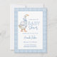 Apresentando nosso modelo de convite para chá de fraldas editável para o "Pequeno Ganso". Este design de capricho apresenta um ganso adorável com um arco, perfeito para uma celebração especial. Personalize os detalhes para criar um convite exclusivo e personalizado.