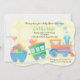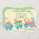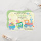 Tempo de trem, um convite neutro para chás de fraldas com cores suaves e um trem adorável. Este pequeno trem está puxando presentes para o seu chá de fraldas! As cores pastel neutras de verde e amarelo são o pano de fundo desse convite divertido.