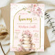 Convite para Chá de fraldas do Tea Party Dourado, Rosa-Rosa-Blush