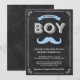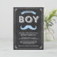 Este convite velho-timey bonito do chá de fraldas inclui um bigode lunático e o texto "está tendo um menino." O design do quadro-estilo igualmente inclui um esquema de cores azul e branco do quadro do vintage do divertimento e de uma luz -.