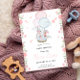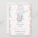 "Prepare-se para dar as boas vindas ao nosso pequeno com um cheio de alegria! Junte-se a nós para um chá de fraldas com o tema dos elefantes, com sotaques cor-de-rosa e azuis e deliciosas decorações de balões. Vai ser perfeito para o pachyderm!" você pode personalizar este convite adicionando seus próprios detalhes de chá de fraldas.