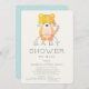 Este chá de fraldas bonito e moderno por carta de convite por correio apresenta um fundo branco creme com tigre. O verso apresenta um fundo verde azul/hortelã para bebês com padrões de bolinhas brancos. Personalize-o para as suas necessidades. Você pode encontrar mais produtos de leão na minha loja.