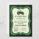 Encontrem seus convidados com este legal chá de fraldas temático do trator convidando com um trator de fazenda verde giro com tipografia moderna em um fundo de quadro. Basta adicionar os detalhes do seu evento neste modelo fácil de usar para torná-lo um convite de tipo único. Sacudir a carta para revelar uma bela textura de grama verde na parte de trás da carta.