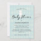 Um ursinho branco aparece acima do texto do "Chá de fraldas" com azul-bebê, um fundo de diamante argyle para celebrar um chá de fraldas temático de um menino. Modelos criaram por você.