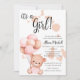 Urso de Teddy Rosa e Branco com Convite para Chá de fraldas de Balões