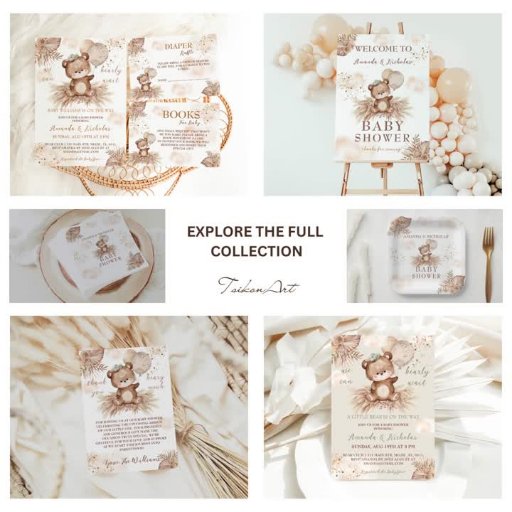 Este convite de chá de fraldas de ventre, bonito, neutro em gênero, com o tema do ursinho apresenta uma mistura de sotaques rústicos vintage em cores de pastel quente como bege, marfim, verde e marrom. Um adorável ursinho de pelúcia, nuvens, grama-palma, folhas de palma e flores criam uma atmosfera acolhedora e convidativa. Não se esqueça de explorar a coleção de cheios!