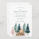 O Whimsical boho simples aquarela, convite para chá de fraldas da floresta do ursinho dormindo, em tons de verde e rosa.