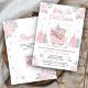 Encontrem seus hóspedes com este elegante tema de floresta, o chá de fraldas de inverno convida com um lindo ursinho rosa e adorável de pelúcia, com flores cor-de-rosa, com o Código QR para registro de presentes. Basta adicionar os detalhes do seu evento neste modelo fácil de usar para torná-lo um convite de tipo único.