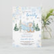 Celebrar a chegada com nosso adorável convite para Chá de fraldas do Urso Azul! Apresentando uma encantadora cena de inverno, este convite mostra um urso azul giro cercado por pinheiros brancos, flocos de neve delicados, e florais suaves, fazer perfeito para um chá de fraldas de menino. BBS564