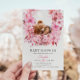 Este chá de fraldas é tão acolhedor como o abraço de um ursinho! Apresentando um urso sonhador aninhado numa faixa aquática de flores cor-de-rosa macia, é perfeito para celebrar uma futura mãe. Os delicados detalhes florais e a elegante tipografia acrescentam um toque de charme, fazer uma forma inesquecível de convidar convidados.