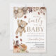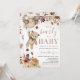Bem-vindos a mais nova chegada do outono com nosso Convite para Chá de fraldas de Urso Neutro de Sexo. Este charmoso design apresenta um adorável urso marrom segurando um balão marrom, cercado por uma abóbora e folhas de outono. Os tons quentes e terríveis e os elementos sazonais tornam-no perfeito para uma comemoração do outono, seja esperando um menino ou uma menina. BBS875