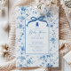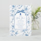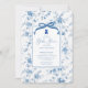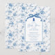 Elevem a celebração do chá de fraldas com o nosso belo convite para o Toile floral azul e branco, com um encantador padrão toile de jouy. Esta peça elegante mostra um arco de coquete e um delicioso ursinho de pelúcia. Perfeitamente concebido para dar um tom sofisticado ao seu evento, este convite não só transmite a sua alegre ocasião, como também adiciona um toque de elegância eterno que os seus convidados adorarão. Torne seu chá de fraldas inesquecível com este convite incrível que reflete estilo e graça.