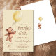Um ursinho fofinho bonito segurando-se num balão amarelo. Fontes de estilo manuscrito e caprichoso. Paleta de cores amarela e castanha. Use a Ferramenta Editar para selecionar diferentes fontes, alterar a cor do plano de fundo ou redimensionar/reposicionar o urso ou o céu. © Kimbellish, LLC