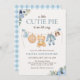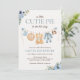 Celebra a mãe para estar com este convite de Chá de fraldas de Teddy Bear Boy Cutie Pie Blue. Apresentando flores azuis macios, tortas aconchegantes, roupas de menino bebê em uma linha de roupa, e um adorável ursinho d'água, este design de outono ruidoso de vassoura é perfeito para um chá de fraldas de outono ou um bebê de Ação de Graças. Personalize com os detalhes do evento e chá a sua pequena torta em estilo.