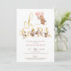 Dourada Palavra Blush Floral Teddy Bear Chá de fraldas Convite para chá de fraldas de uma menina de ventre simples, com um pequeno ursinho e balões cor-de-rosa. Este convite de chá de fraldas feminino também apresenta uma falsa palavra de folha de ouro e vários arranjos florais de lâmina cônica e ouro. Ideal para alguém à procura de um convite para chá de fraldas às raparigas de ursinho moderno.