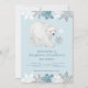 Jogue o chá de fraldas mais fofo do urso polar de inverno com este adorável convite personalizado para chás de fraldas. Estes convites personalizados para chuveiros de bebês são totalmente personalizáveis! Você pode editar o texto clicando em "personalizar este modelo". Este convite para chás de fraldas de urso polar apresenta uma elegante borda azul, branca e floco de neve com brilho prateado, bem como uma ilustração original de urso polar de OhMyStarling. O cartão de chá de fraldas de inverno tem um fundo azul gelado que é excelente de uma festa de chá de fraldas temático do animal ártico. A parte traseira desses convites de festas chás de fraldas tem um padrão repetido floco de neve azul, branco e prateado brilhante.