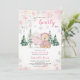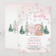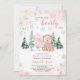 Celebrar a chegada com nosso adorável Convite para Chá de fraldas de Urso Rosa! Apresentando uma encantadora cena de inverno, este convite mostra um urso rosa giro cercado por pinheiros brancos, flocos de neve delicados, e florais suaves, fazer perfeito para um chá de fraldas feminino. BBS557