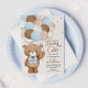 Este adorável convite temático do ursinho coloca um sorriso nos rostos dos seus hóspedes! O esquema de cores azul-pastel, castanho e bege torna este design perfeito para um aniversário de meninos. Personalize o convite com seus detalhes e se quiser reorganizar o estilo e posicionamento do texto, pressione o botão "Clique para personalizar mais".